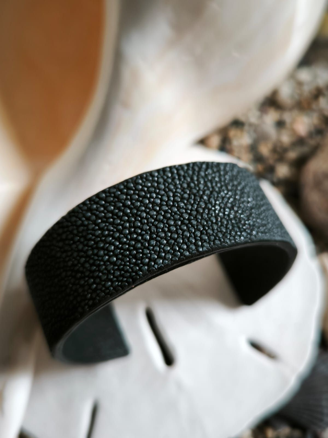 - Cuir: saumon - chèvre coloris noir ébène
